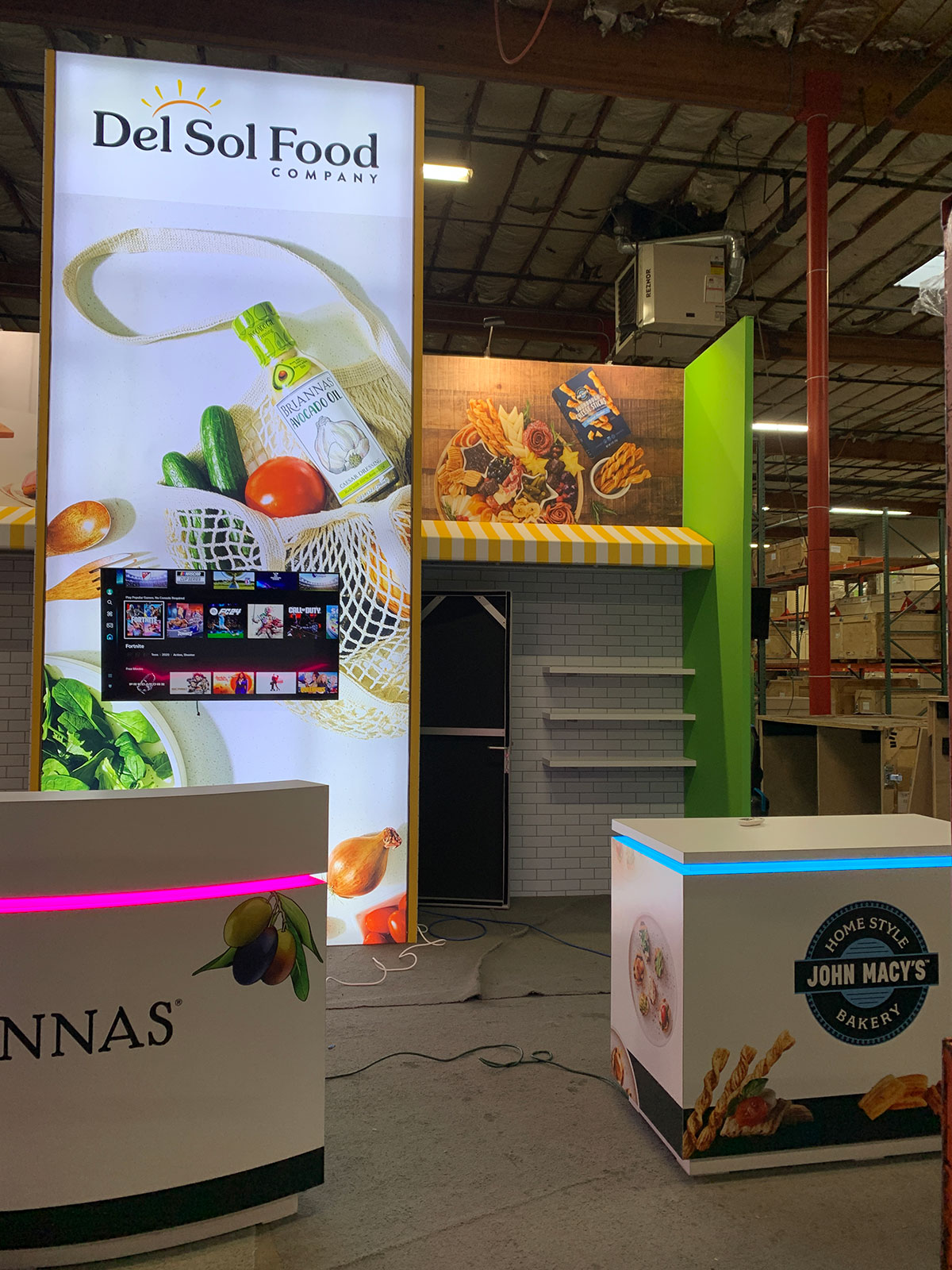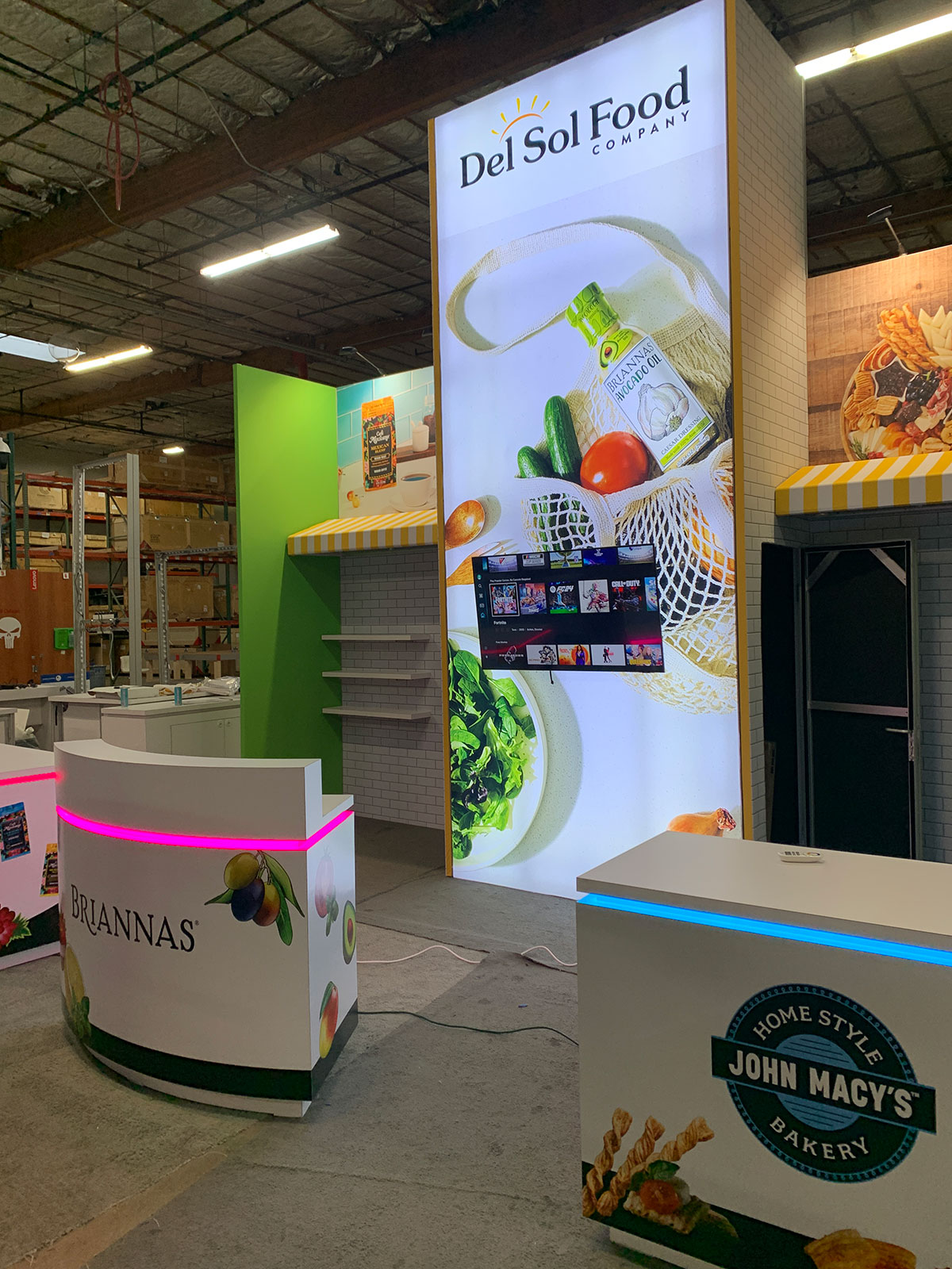 Custom Inline with Gravitee Closet, SEG Graphics, Archway Support for LED Video Tiles, Locking Cabinet, and (2) Custom L-shaped Counters with Halo Lit Logo Signs Custom Inline with Gravitee Closet, SEG Graphics, Archway Support for LED Video Tiles, Locking Cabinet, and (2) Custom L-shaped Counters with Halo Lit Logo Signs -- View 2 Custom Inline with Gravitee Closet, SEG Graphics, Archway Support for LED Video Tiles, Locking Cabinet, and (2) Custom L-shaped Counters with Halo Lit Logo Signs -- View 3