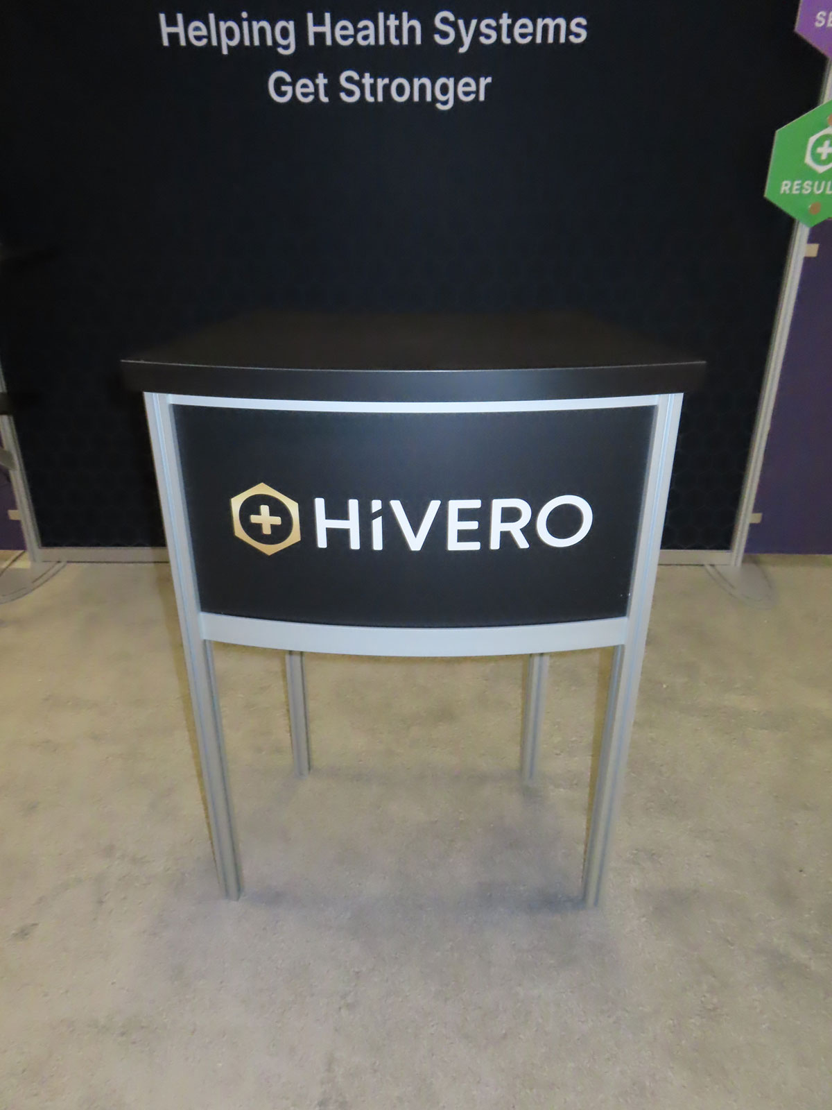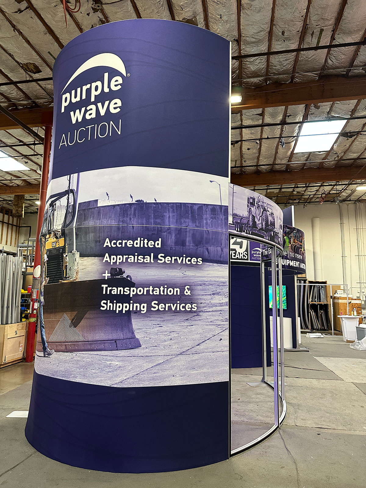 RENTAL: Modified RE-9097 Island Design with 16 ft. High Curved Gravitee Walls, 65" Monitor with HDMI Cable, 55" Monitor with HDMI Cable, RE-1597 White Laminated Curved Counter, SEG Fabric Graphics, and Direct Print Vinyl Applied Graphic RENTAL: Modified RE-9097 Island Design with 16 ft. High Curved Gravitee Walls -- View 2 RENTAL: Modified RE-9097 Island Design with 16 ft. High Curved Gravitee Walls -- View 3 RENTAL: Modified RE-9097 Island Design with 16 ft. High Curved Gravitee Walls -- View 4 RENTAL: Modified RE-9097 Island Design with 16 ft. High Curved Gravitee Walls -- View 5 RENTAL: Modified RE-9097 Island Design with 16 ft. High Curved Gravitee Walls -- View 6 RENTAL: Modified RE-9097 Island Design with 16 ft. High Curved Gravitee Walls -- View 7 RENTAL: Modified RE-9097 Island Design with 16 ft. High Curved Gravitee Walls -- View 8