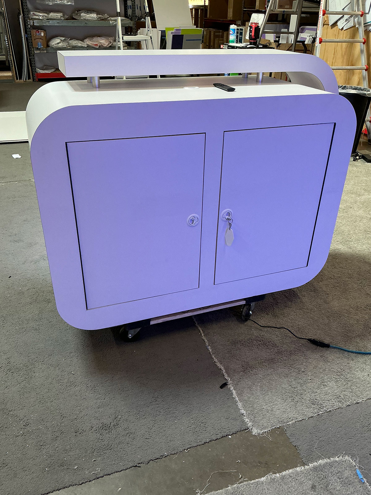 Custom Counter with Backlit Graphic and Locking Storage