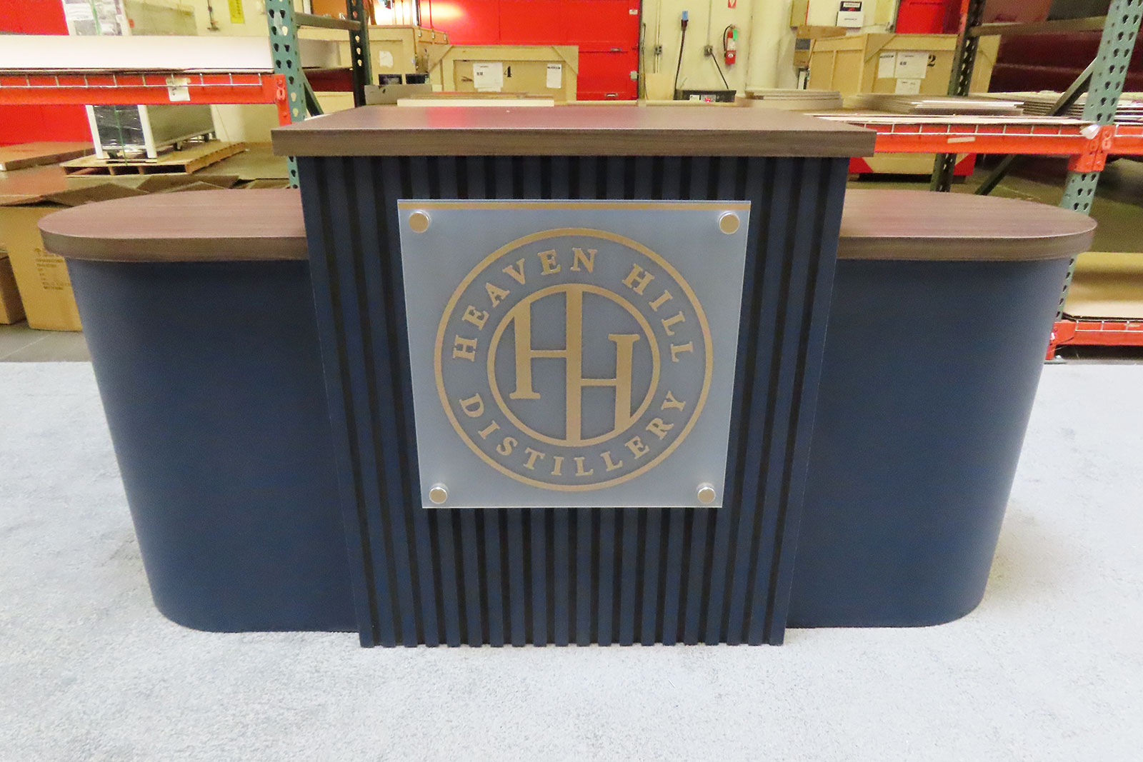 Custom Product Display Counter with Backlit Logo and LED Accent