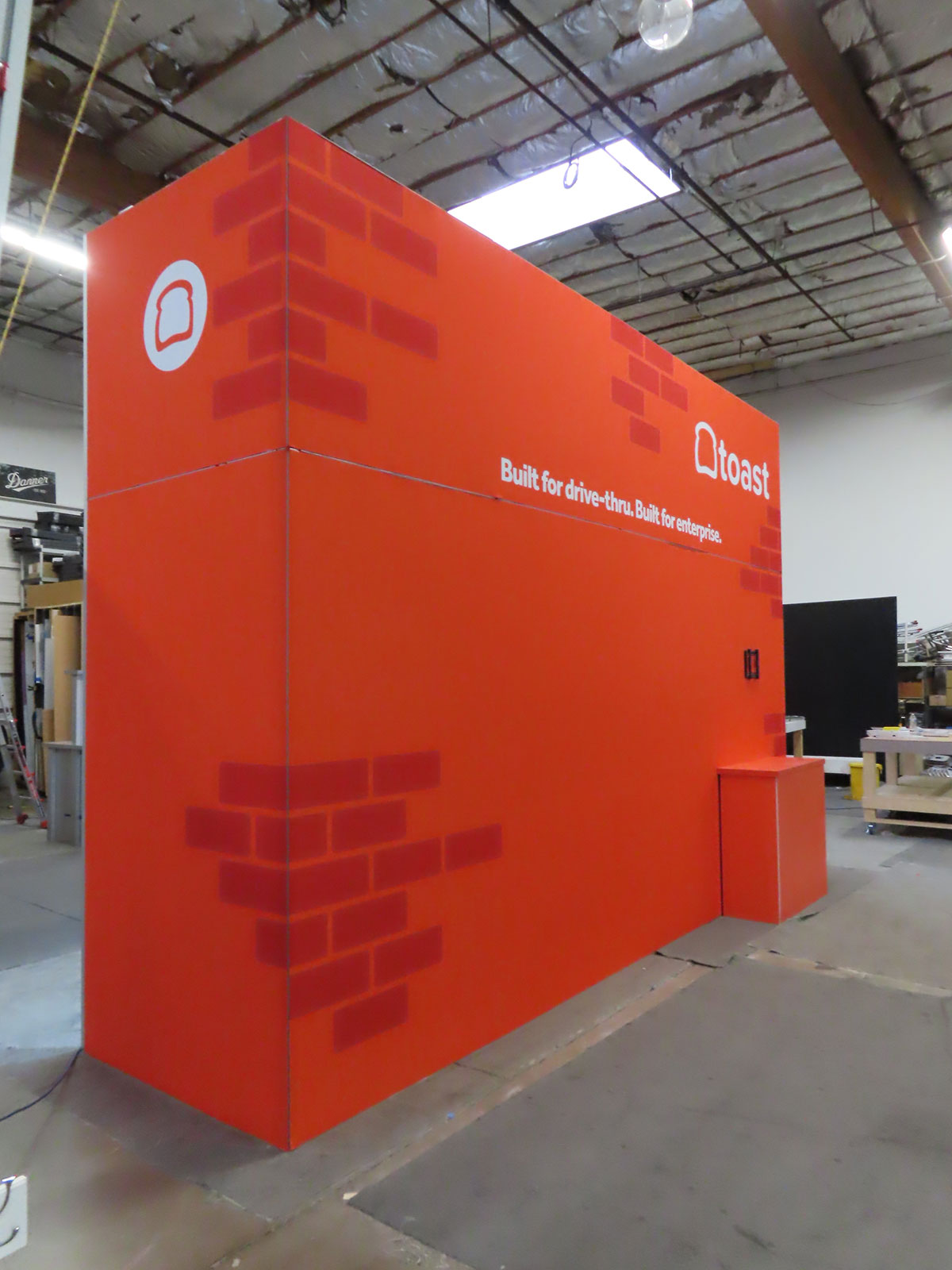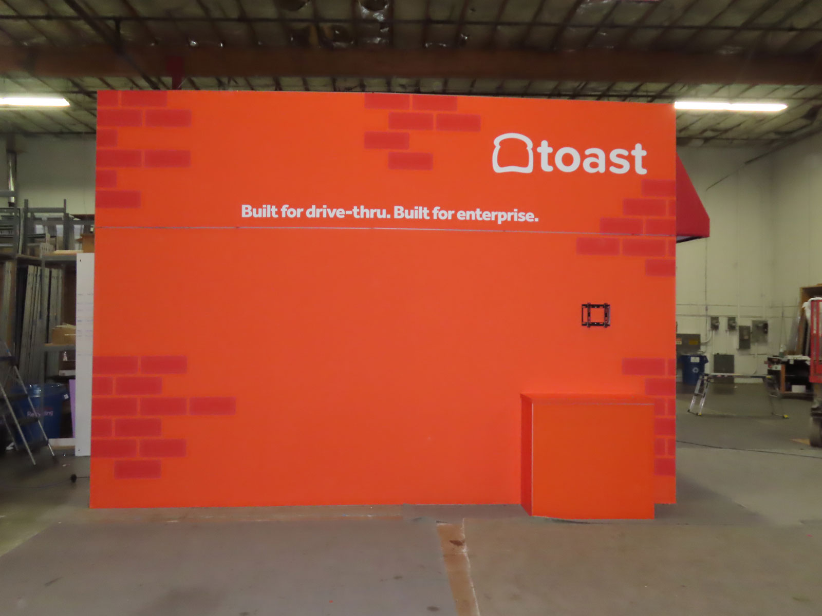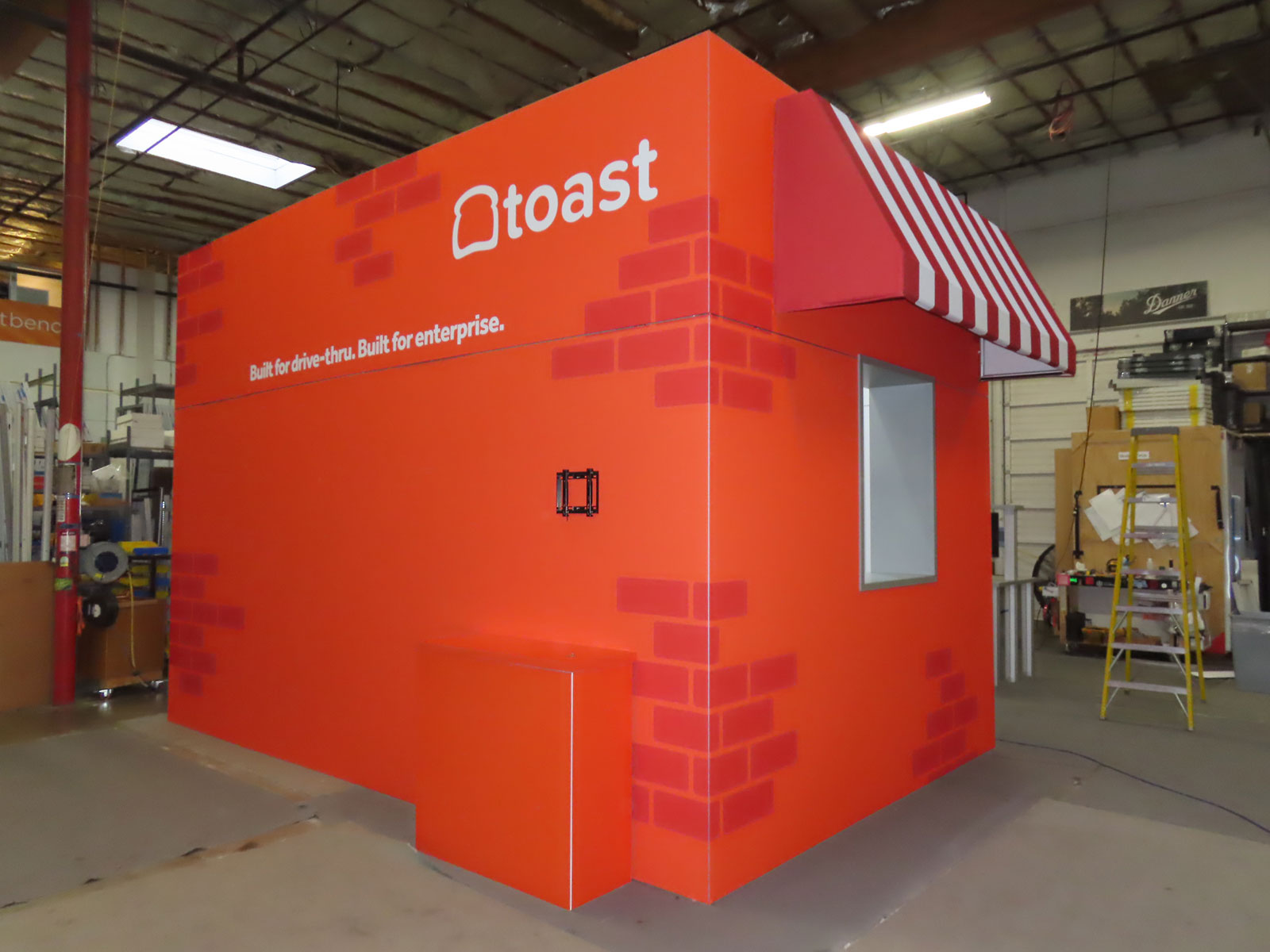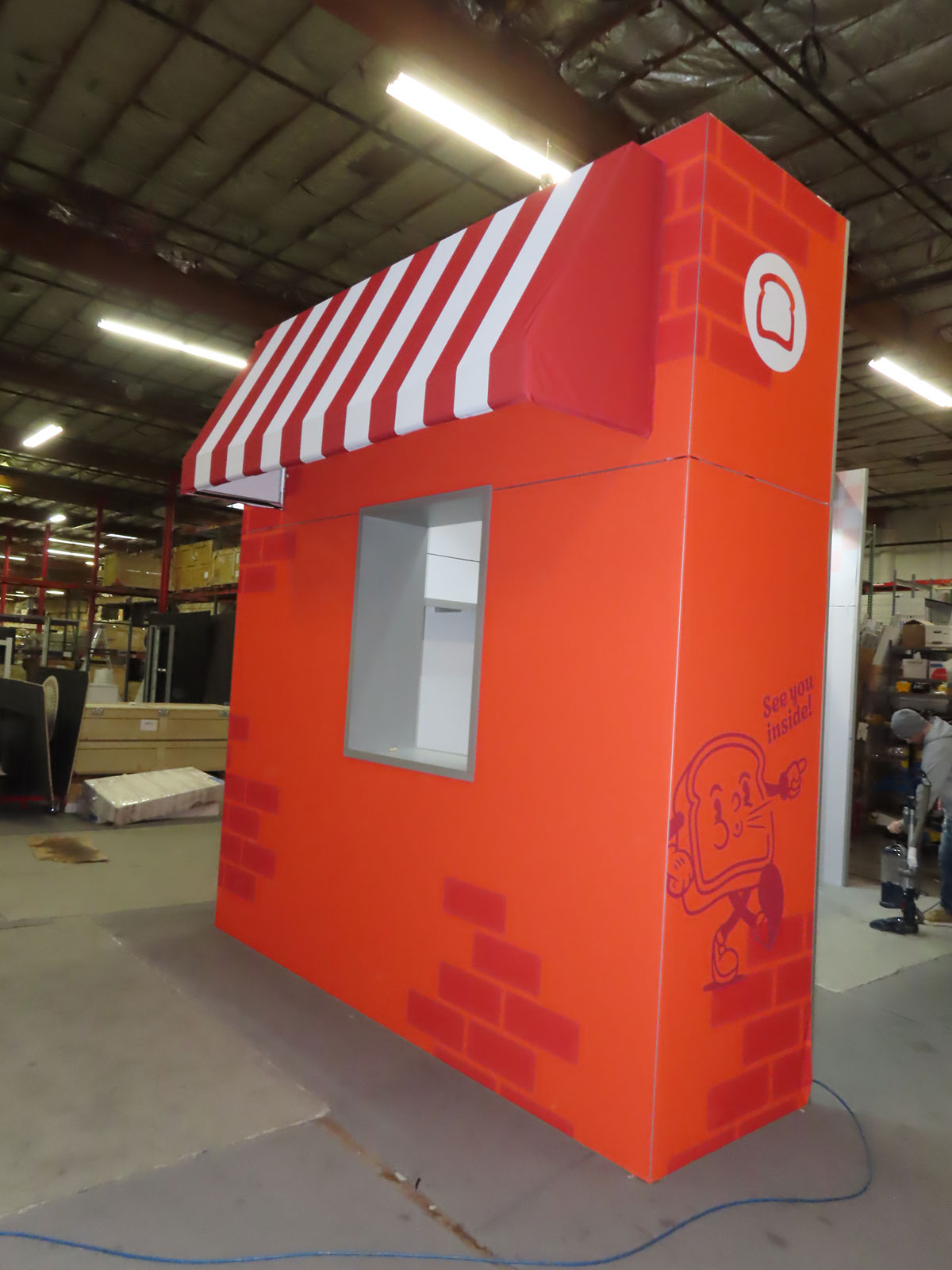 Custom Wood Room Extension with Vinyl Graphics, Product Kiosk