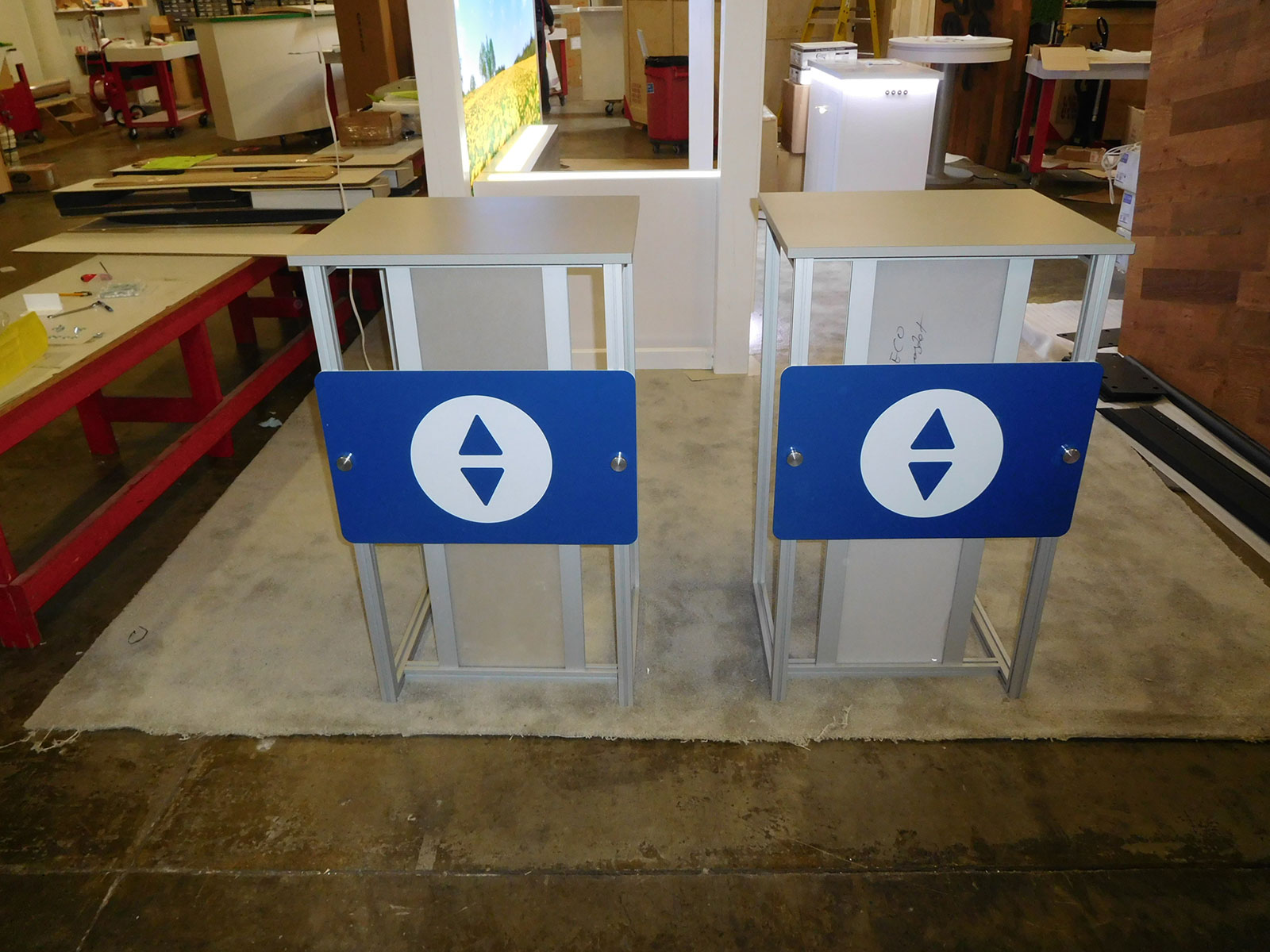 Custom eSmart Sustainable Inline with Graphics, Projection Screen, and (2) ECO-26C Modular Pedestals ECO-26C Modular Pedestal
