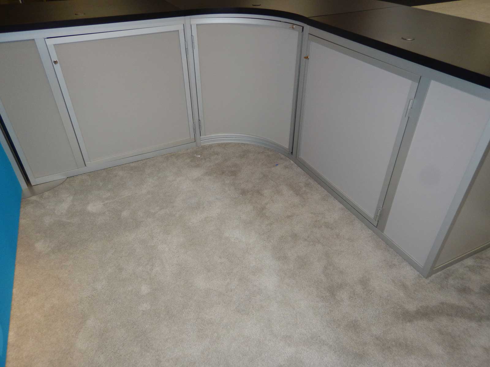 Large Curved Counter with Locking Door & Interior Shelf, and Front