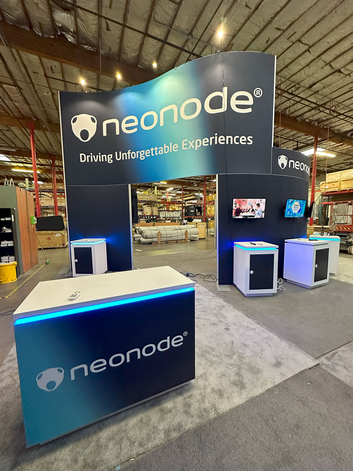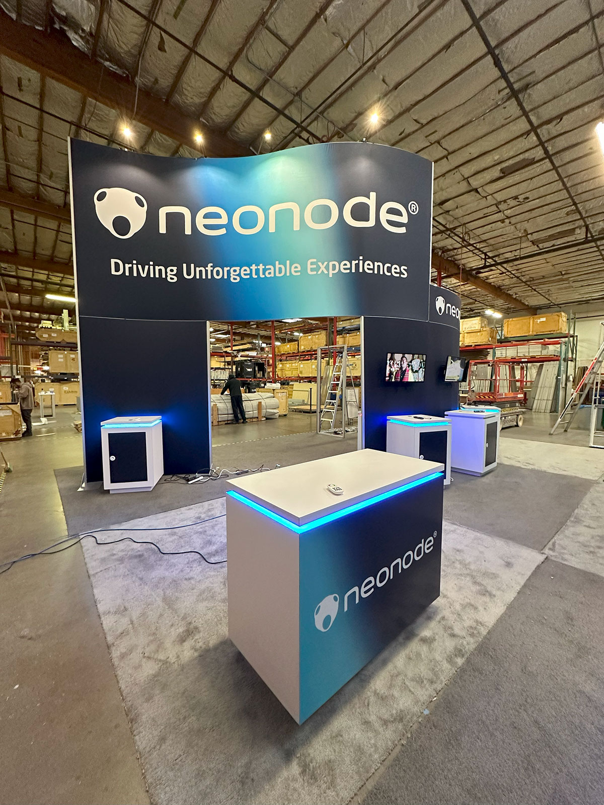 Exhibit with Tension Fabric Graphics, Monitor Mount, Backlt