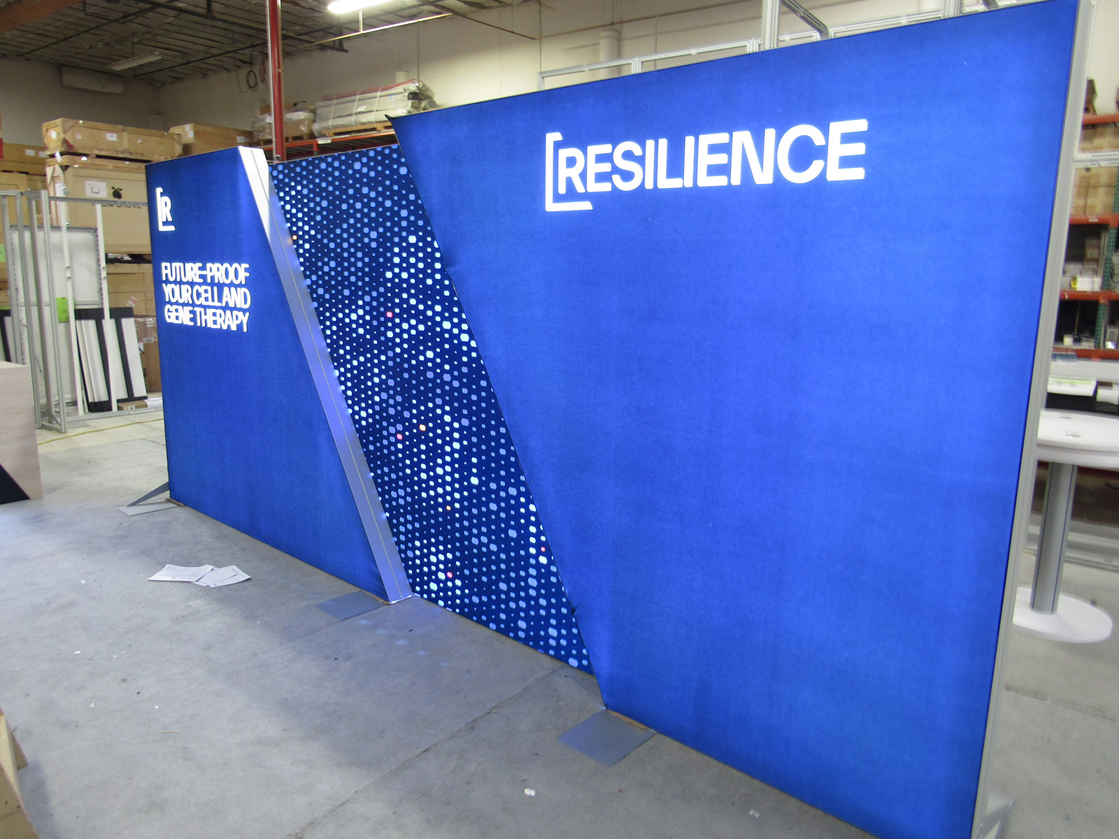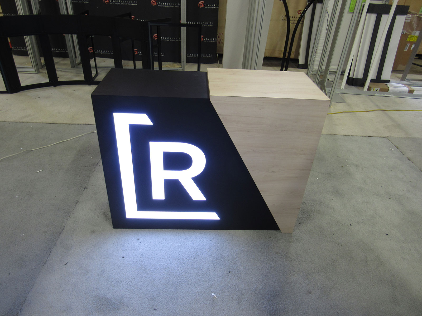 Custom SuperNova LED Lightbox with Large Monitor Mount, SEG Fabric Graphics, Custom Reception Counter with Backlit Logo, and MOD-1453 Charging Table with RGB Programmable Lights Custom SuperNova LED Lightbox with Large Monitor Mount, SEG Fabric Graphics, Custom Reception Counter with Backlit Logo, and MOD-1453 Charging Table with RGB Programmable Lights Custom Reception Counter -- Front Custom Reception Counter -- Rear MOD-1453 Charging Table with RGB Programmable Lights