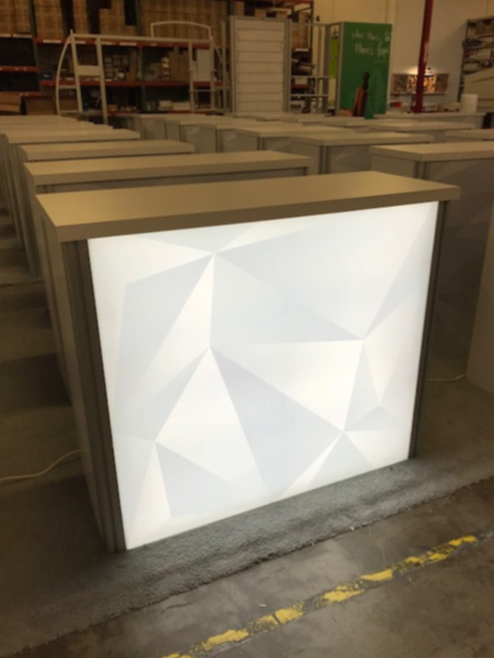 RENTAL: (49) Gravitee One-Step System Backlit Counters at Various Sizes with Silicone Edge Fabric Graphics, and Unprinted Sintra Infill Inserts