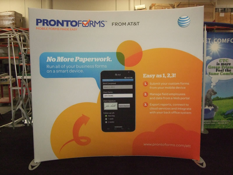 TF-511 Portable Display with "No-Tools" Push-button Assembly and a Pillowcase Fabric Graphic -- Image 1 TF-511 Portable Display with "No-Tools" Push-button Assembly and a Pillowcase Fabric Graphic -- Image 2