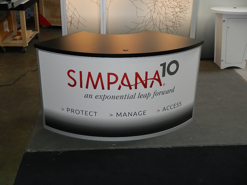 RENTAL:  Modified RE-2021 10' x 20' Rental with RE-1205 Large Curved Counter and Large Monitor Mount -- Image 1 RENTAL:  Modified RE-2021 10' x 20' Rental with RE-1205 Large Curved Counter and Large Monitor Mount -- Image 2 RENTAL:  Modified RE-2021 10' x 20' Rental with RE-1205 Large Curved Counter and Large Monitor Mount -- Image 3 RENTAL:  Modified RE-2021 10' x 20' Rental with RE-1205 Large Curved Counter and Large Monitor Mount -- Image 4