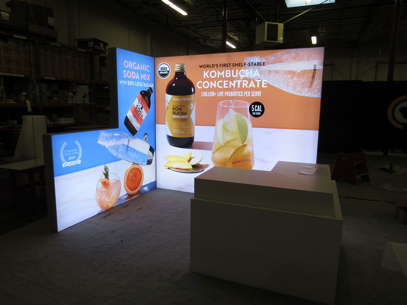 Custom Inline LED Lightbox with Tension Fabric Graphics and Custom Reception Counter Custom Inline LED Lightbox with Tension Fabric Graphics and Custom Reception Counter