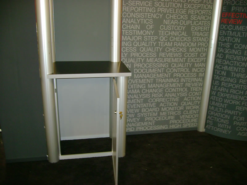 Comment: In a smaller booth, having some storage, especially secure storage, makes everything a little bit easier. Even if you use it to store everyone's briefcases and handbags.