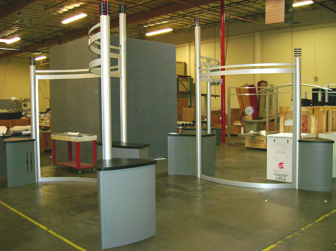 20' x 20' Visionary Designs Display with Custom Attached Pedestals Illuminated Custom Finials for MODUL Extrusion