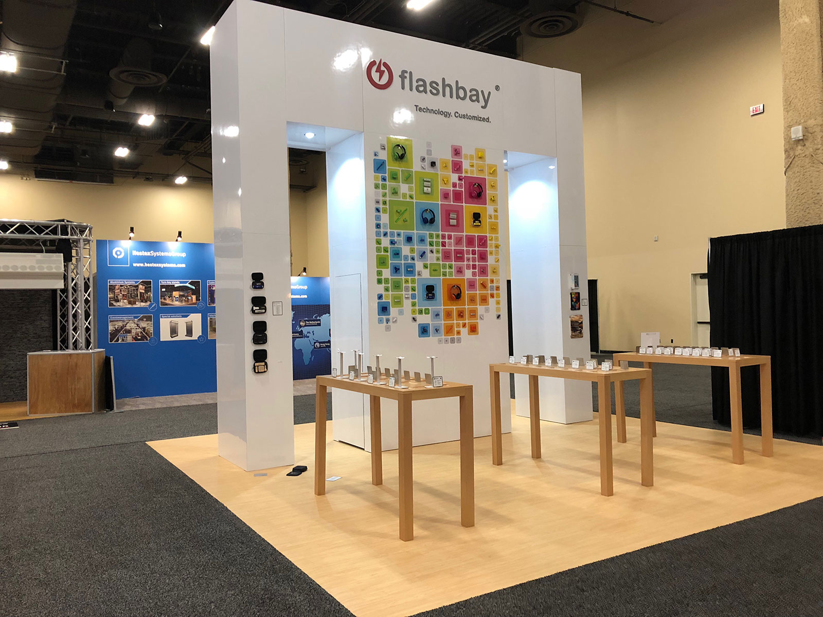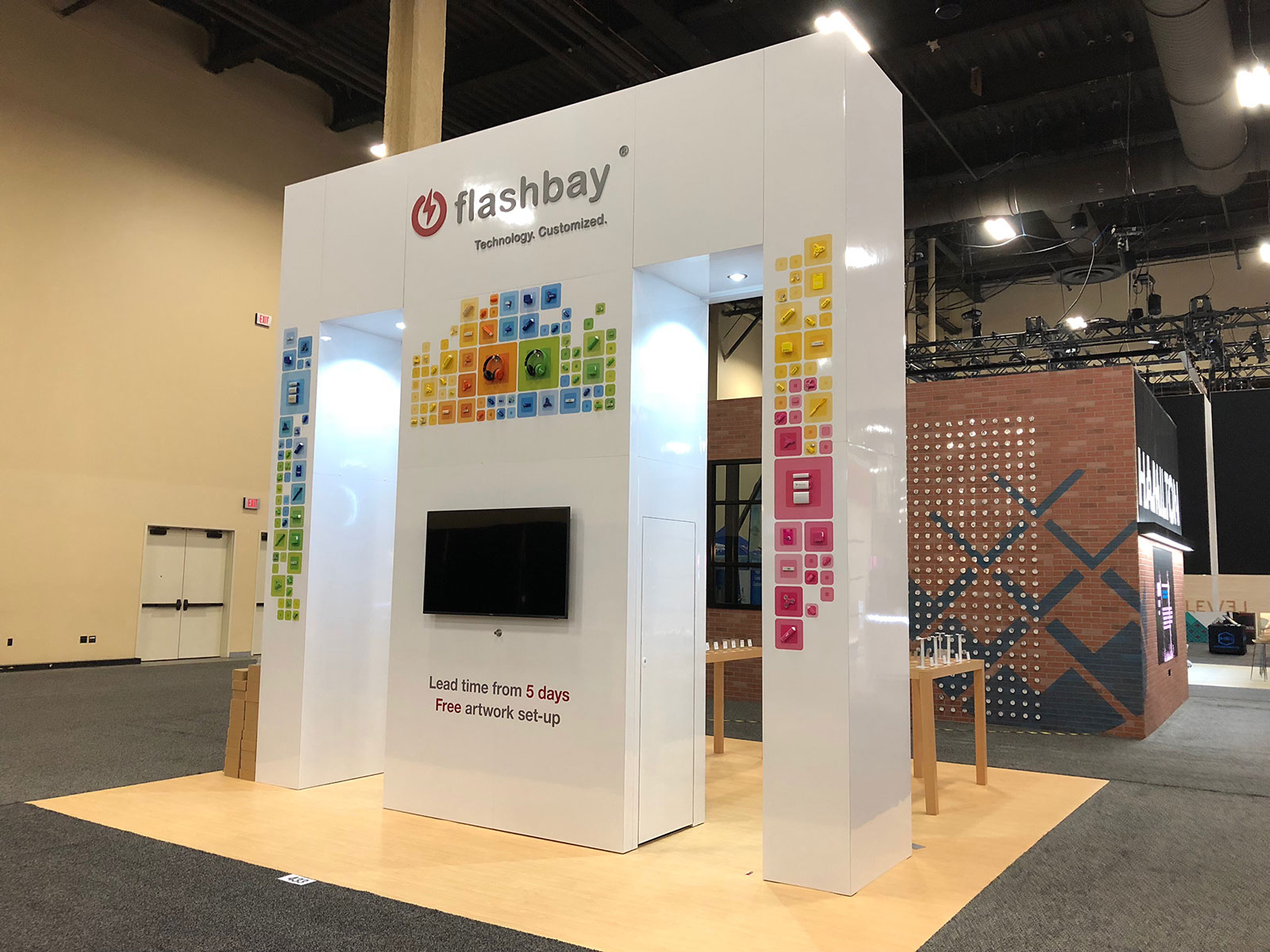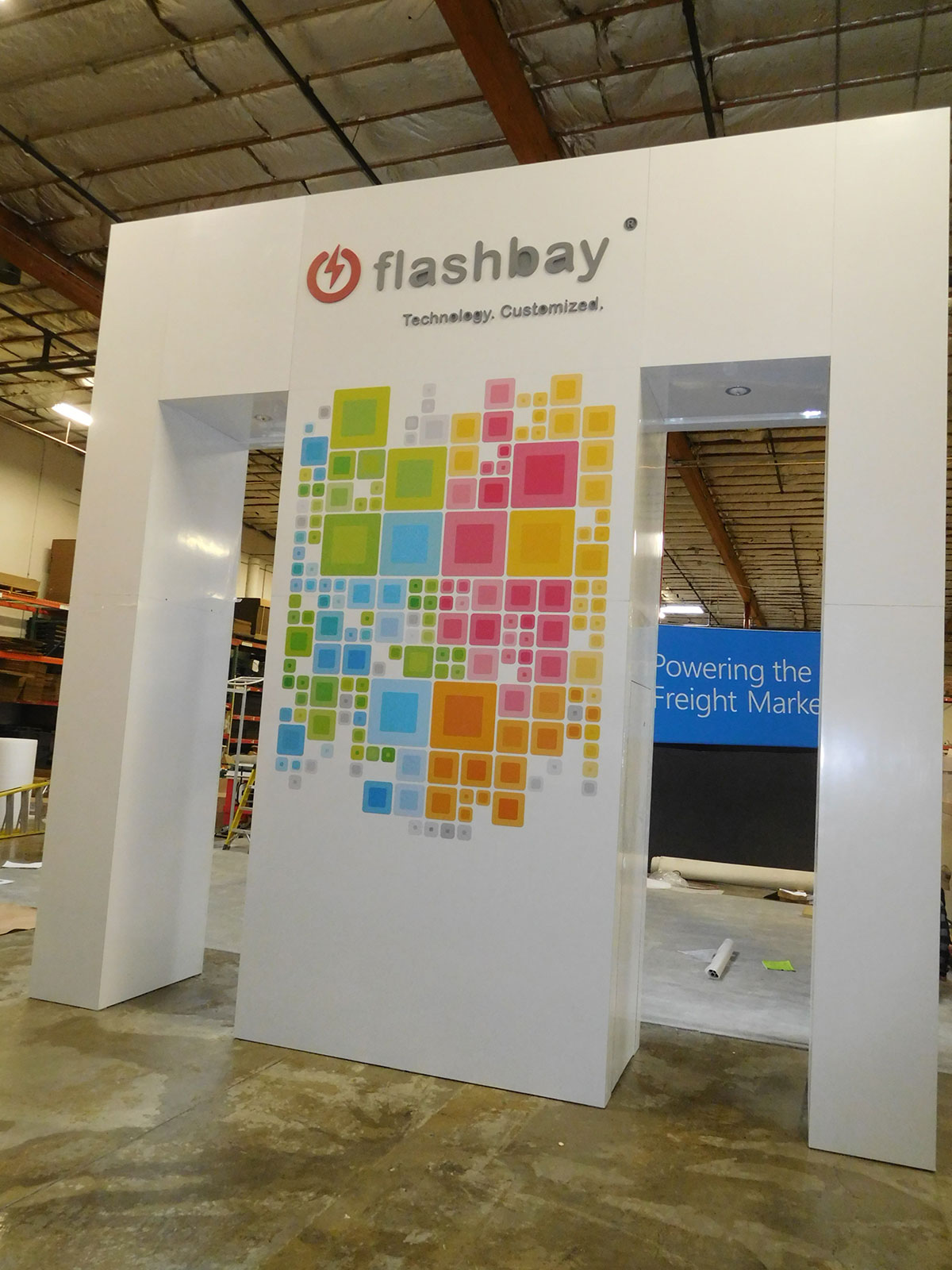 Custom Island Exhibit with Dimensional Lettering, Vinyl Graphics, Closet Storage, Monitor Mount, and Puck Lights Custom Island Exhibit with Dimensional Lettering, Vinyl Graphics, Closet Storage, Monitor Mount, and Puck Lights Custom Island Exhibit with Towers Custom Island Exhibit with Towers