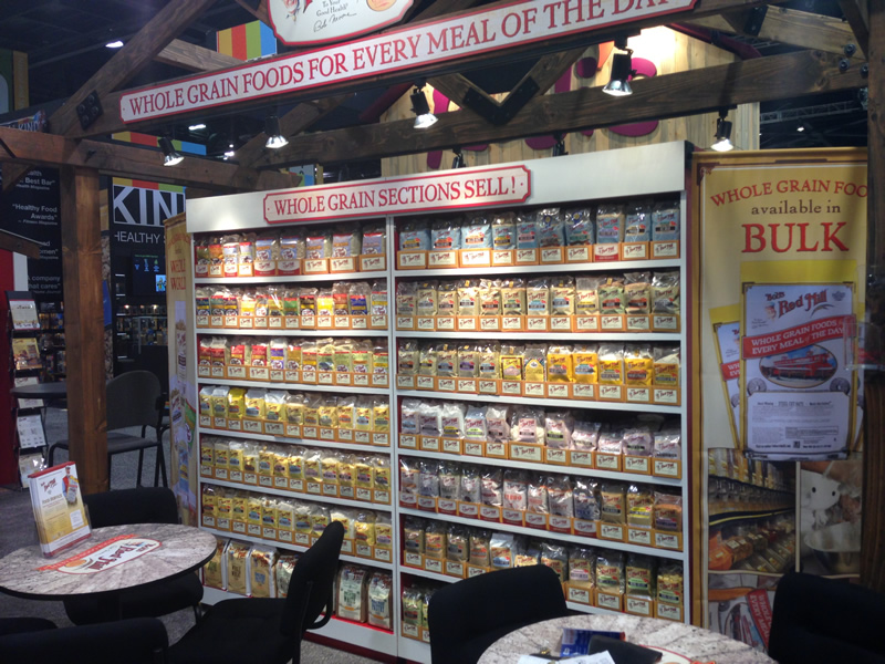Custom Island Exhibit with Product Displays, Demo Area, Seating Section, Informational Structure, and Sampling Station