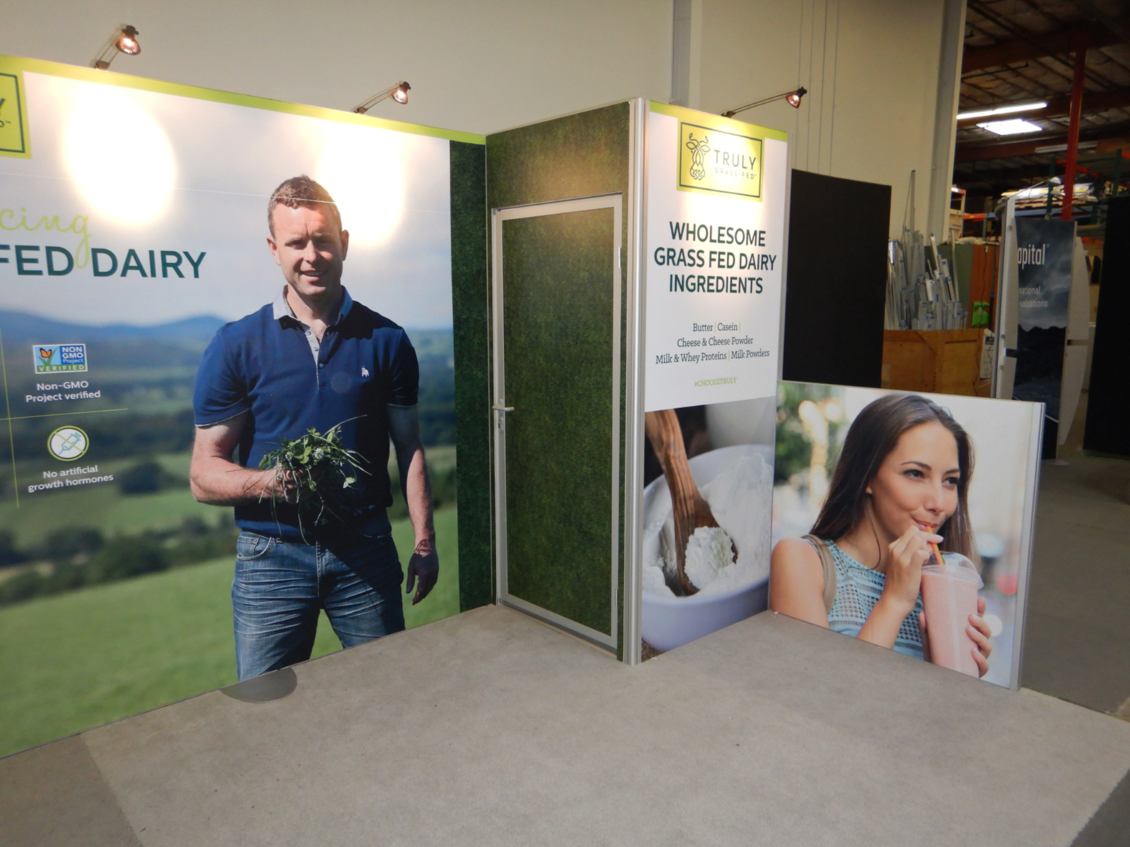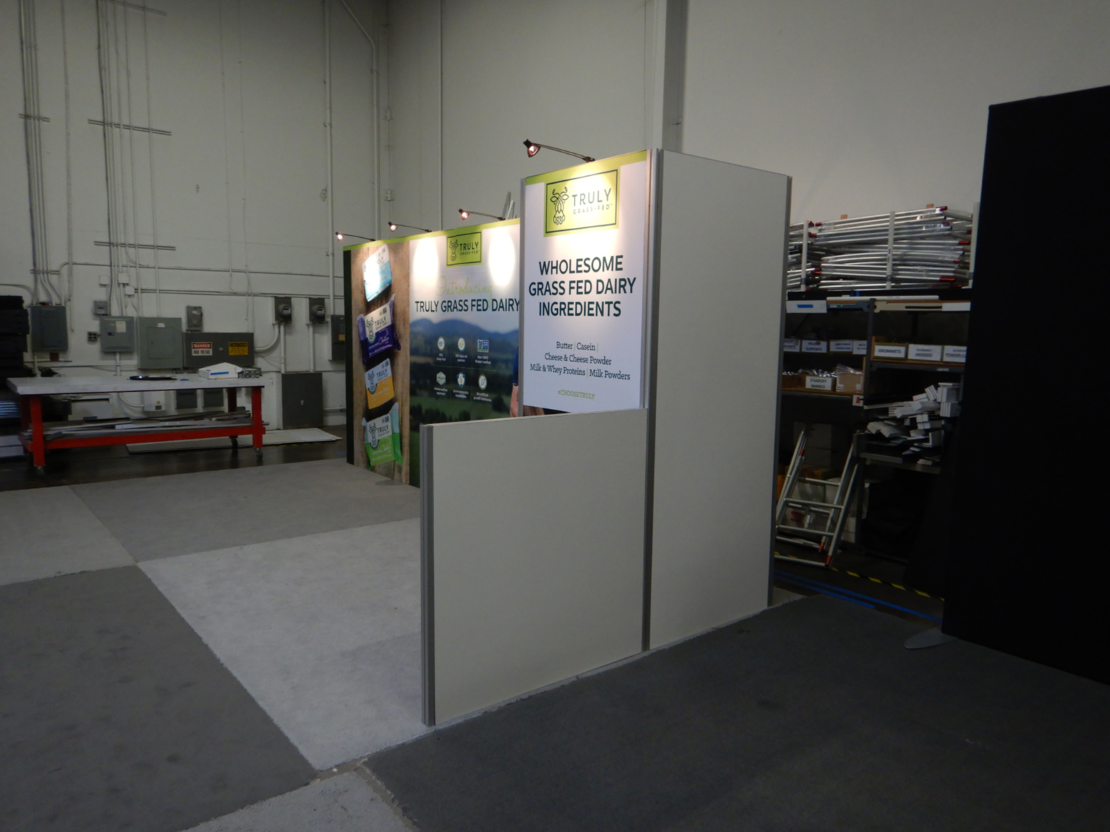 RENTAL: Includes Gravitee One-Step Design with Storage Closet with Locking Door, Short Return Panel, (5) LED Arm Lights, and Silicone Edge Fabric Graphics