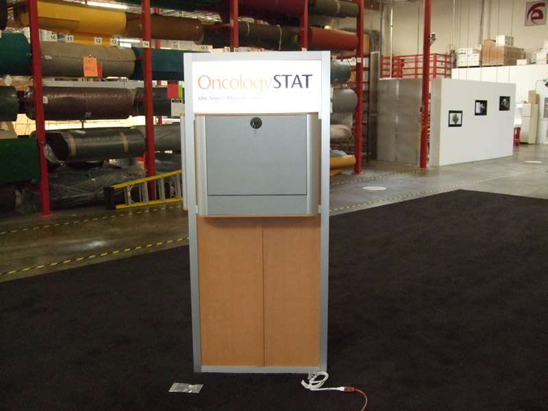 Modular Triangle Kiosk with (2) MOD-200 Laptop Lockboxes and Backlit Headers