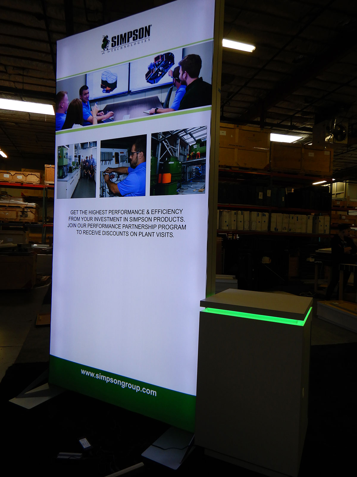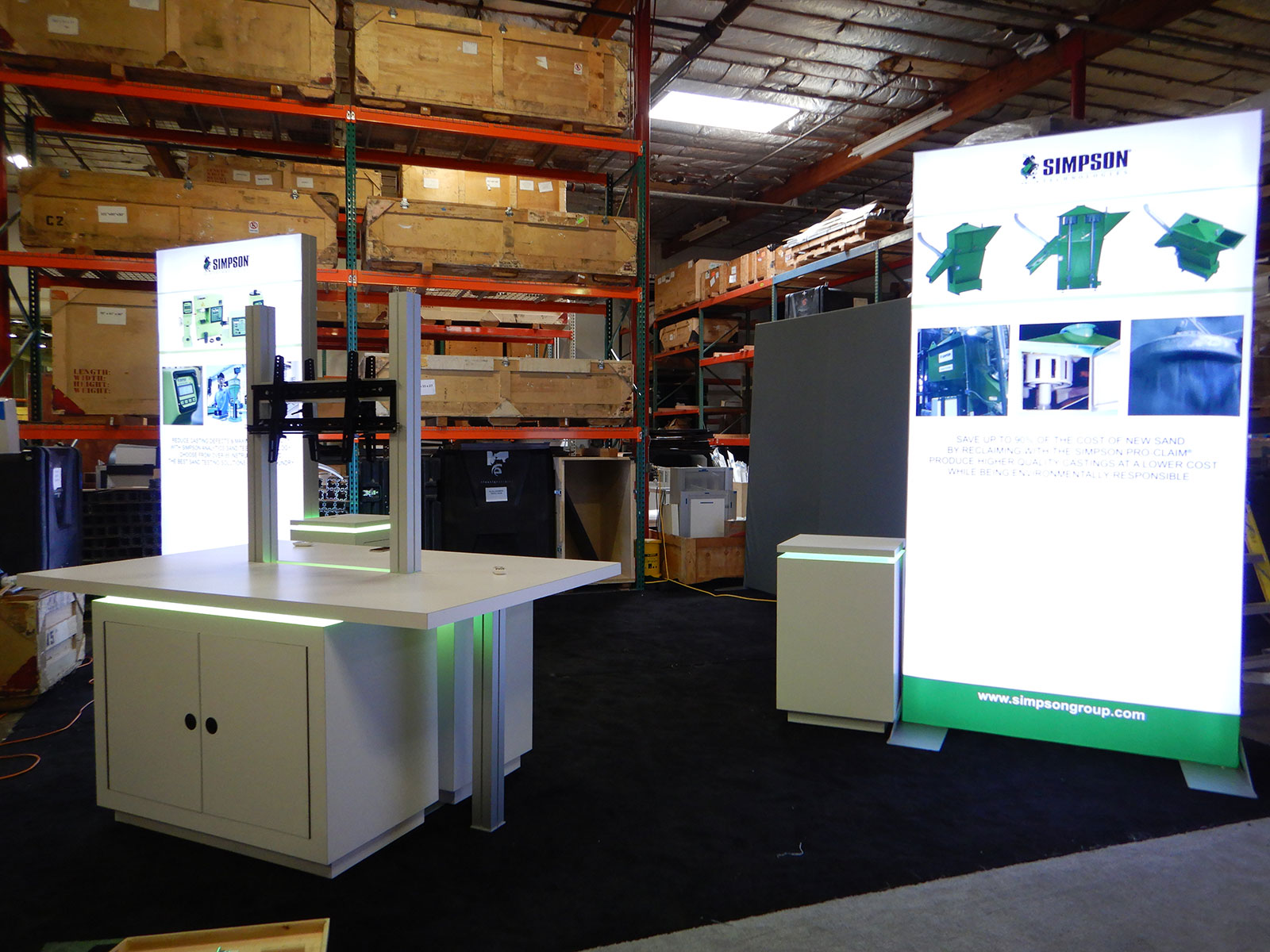 RENTAL: Custom Island Design with (2) 60" Wide x 120" High Double-Sided Lightboxes, Custom Products Table with Recessed LED Lighting, (2) Large Monitor Mounts, (2) 2' x 2' Custom White Laminated Pedestals with Recessed LED Lighting, SEG Backlit Fabric Gra RENTAL: Custom Island Design with (2) 60" Wide x 120" High Double-Sided Lightboxes, Custom Products Table with Recessed LED Lighting, (2) Large Monitor Mounts, (2) 2' x 2' Custom White Laminated Pedestals with Recessed LED Lighting, SEG Backlit Fabric Gra Locking Storage LED SuperNova Lightbox and Counter with LED Perimter Lights