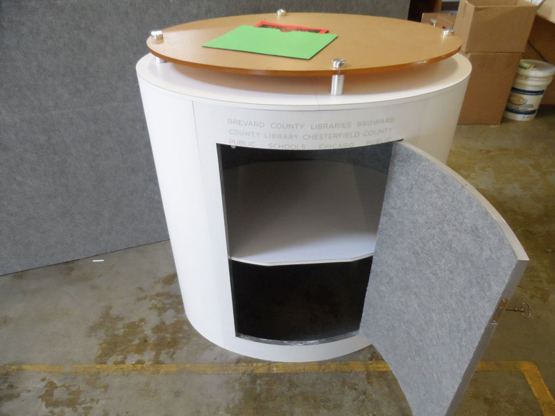 LTK-1155 Custom Modular Pedestal with Storage and a Plex Counter Top -- Image 1 LTK-1155 Custom Modular Pedestal with Storage and a Plex Counter Top -- Image 2 LTK-1155 Custom Modular Pedestal with Storage and a Plex Counter Top -- Image 3