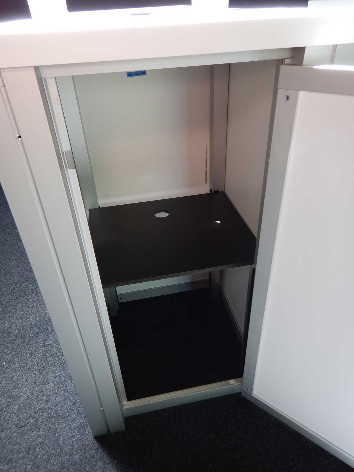 (2) Double-Sided Rental Kiosks with RE-1219 Square Pedestals with Locking Doors Rental:  Spacious Locking Storage with Shelves