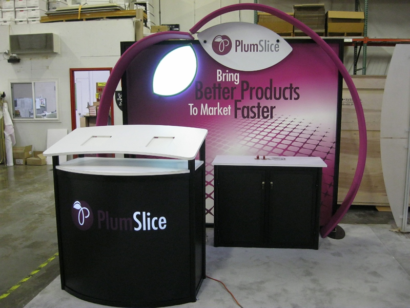 Custom eSmart 10x10 with Powder-coated Metal, Unique Aero Frames, LED Header, and Reception Counter with Recessed iPad Mounts -- Image 1 Custom eSmart 10x10 with Powder-coated Metal, Unique Aero Frames, LED Header, and Reception Counter with Recessed iPad Mounts -- Image 2 Custom eSmart 10x10 with Powder-coated Metal, Unique Aero Frames, LED Header, and Reception Counter with Recessed iPad Mounts -- Image 3 Custom eSmart 10x10 with Powder-coated Metal, Unique Aero Frames, LED Header, and Reception Counter with Recessed iPad Mounts -- Image 4
