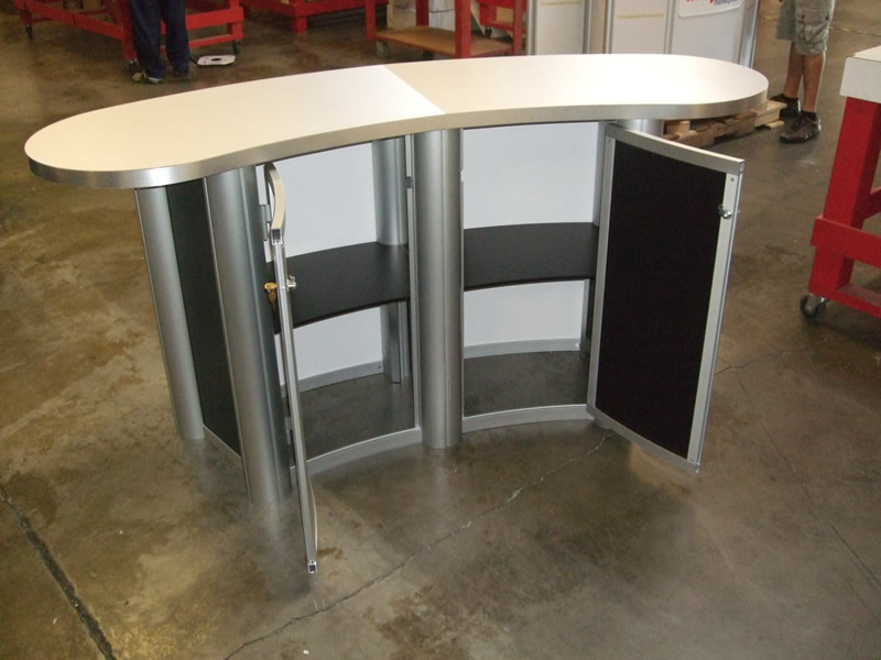 MOD-1183 Modular Oval Reception Counter with Two Doors and Locking Storage -- Image 1 MOD-1183 Modular Oval Reception Counter with Two Doors and Locking Storage -- Image 2