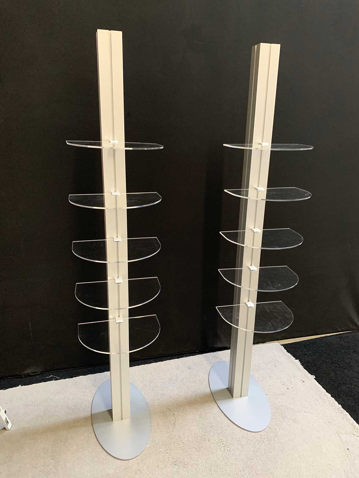 RENTAL: RE-1568 Backlit Reception Counter with Locking Doors and Interior Shelf, (2) RE-1252 Shelf Trees with (5) Clear Acrylic Shelves RENTAL: RE-1568 Backlit Reception Counter with Locking Doors and Interior Shelf, (2) RE-1252 Shelf Trees with (5) Clear Acrylic Shelves RENTAL: RE-1568 Backlit Reception Counter with Locking Doors and Interior Shelf, (2) RE-1252 Shelf Trees with (5) Clear Acrylic Shelves