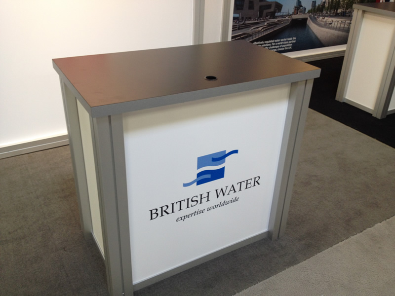 RENTAL: Booth Size: 10' x 20' Custom Hybrid Design with Storage Closet, RE-1202 Counter, and RE-1219 Pedestal