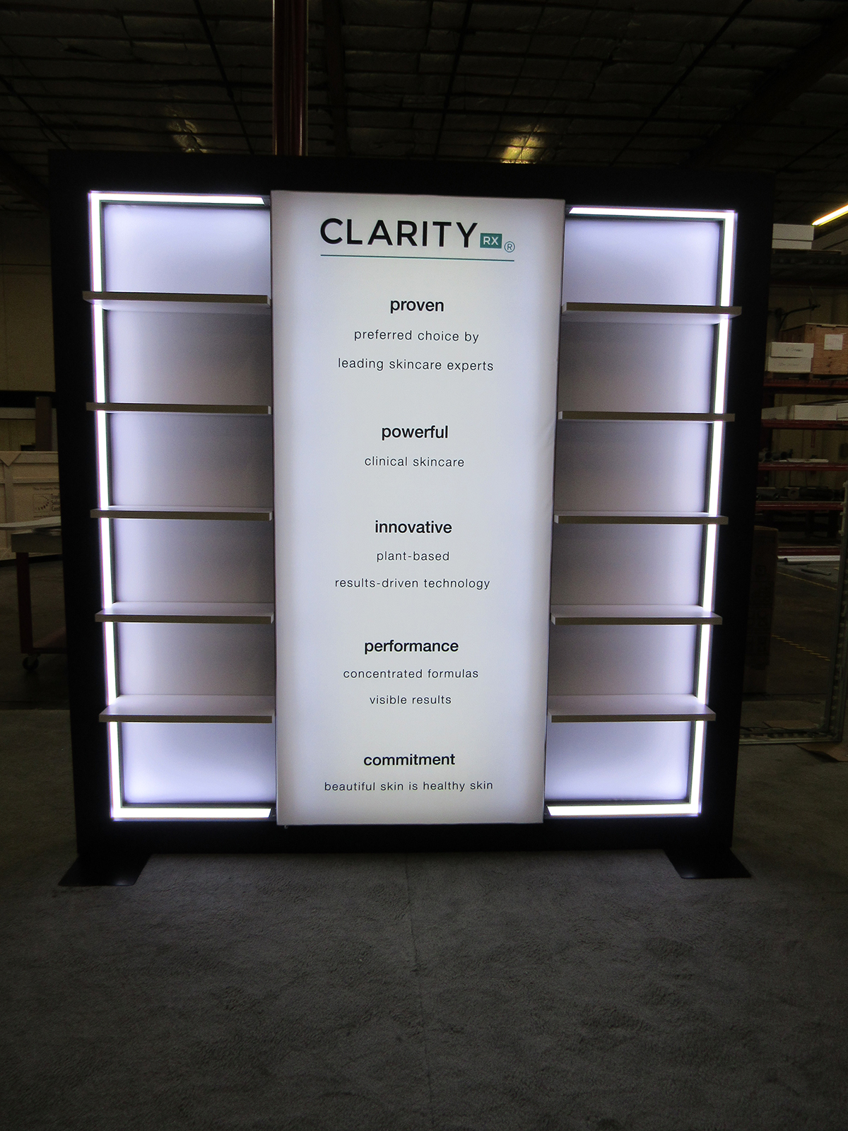 Custom Lightbox Kiosk with Backlit Graphics, Perimeter Lighting and Product Shelves Custom Lightbox Kiosk with Backlit Graphics, Perimeter Lighting and Product Shelves