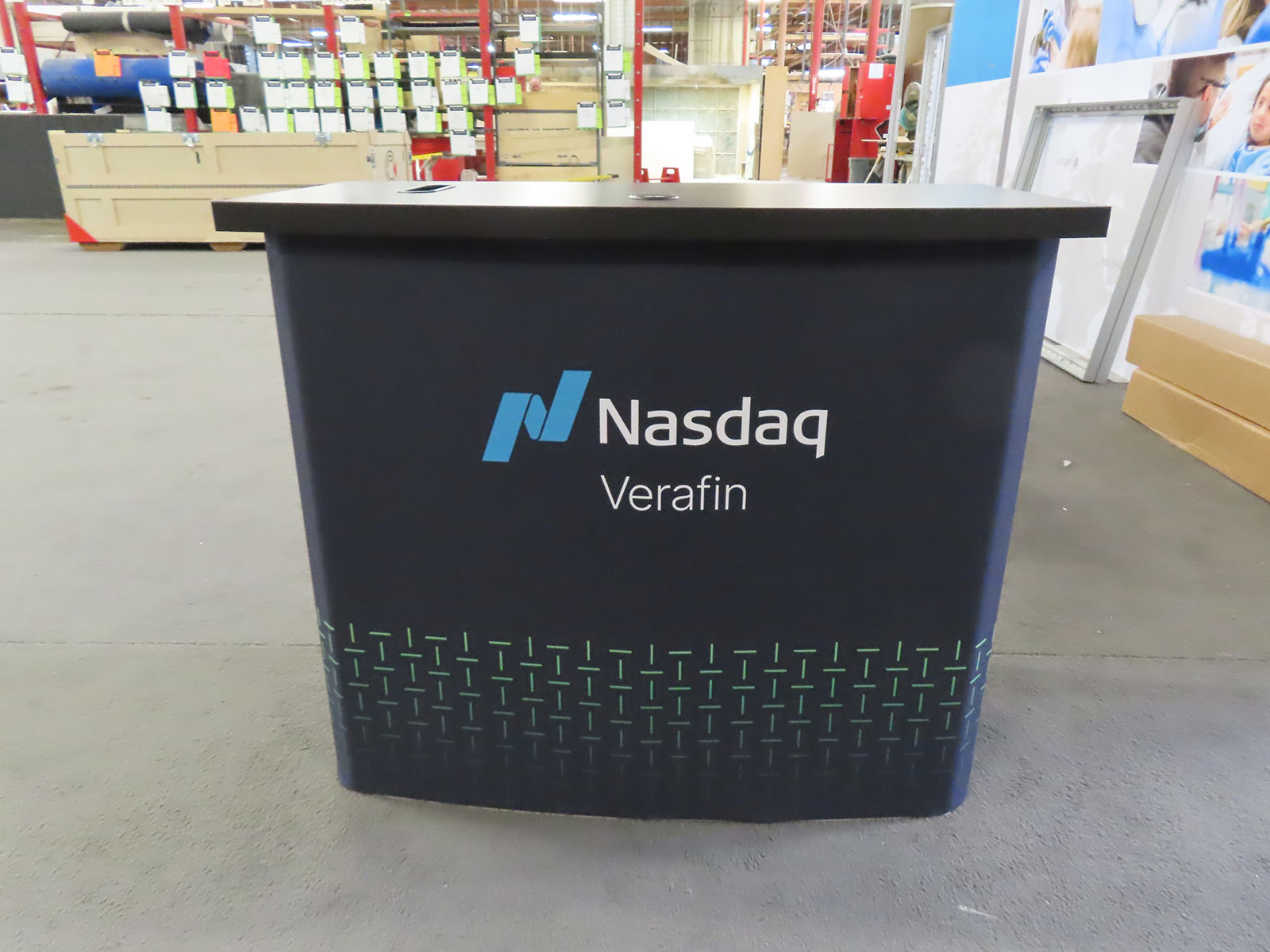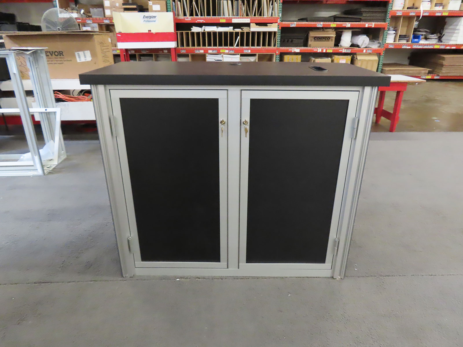 Modified GOD-1560 Gravitee Counter with Fabric Graphic, Grommet, Mail Slot, and Locking Storage Modified GOD-1560 Gravitee Counter -- View 2 Modified GOD-1560 Gravitee Counter -- View 3