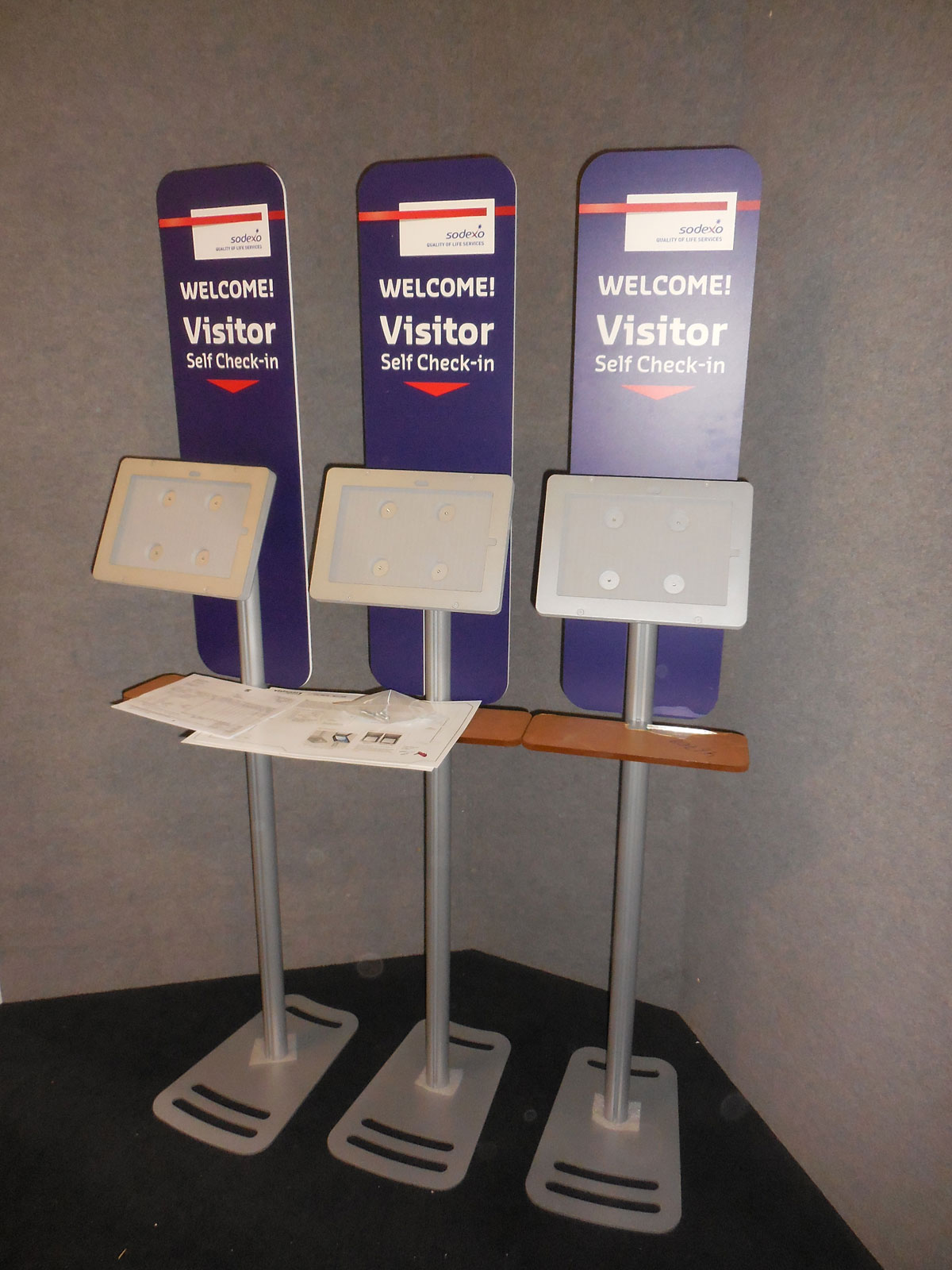 (3) Modified MOD-1368M Tablet Stands with Swivel Enclosure and Keyboard Shelf