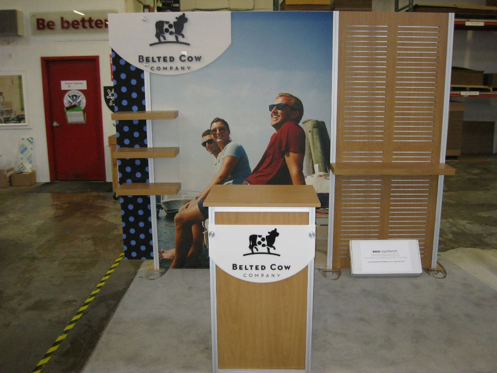 eSmart Modified ECO-1027 with Recycled Aluminum Extrusion, Slatwall Panels, Laminate Shelving and a 3D Header Graphic. Includes LED Lighting and a Custom Storage Counter -- Image 1 eSmart Modified ECO-1027 with Recycled Aluminum Extrusion, Slatwall Panels, Laminate Shelving and a 3D Header Graphic. Includes LED Lighting and a Custom Storage Counter -- Image 2 eSmart Modified ECO-1027 with Recycled Aluminum Extrusion, Slatwall Panels, Laminate Shelving and a 3D Header Graphic. Includes LED Lighting and a Custom Storage Counter -- Image 3