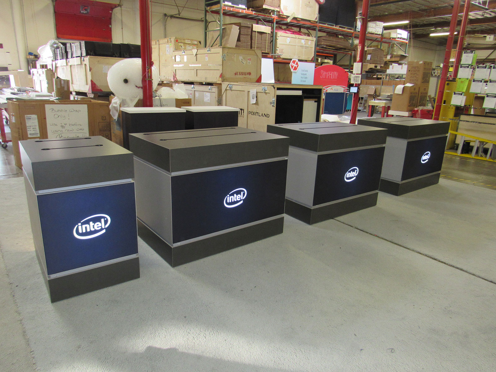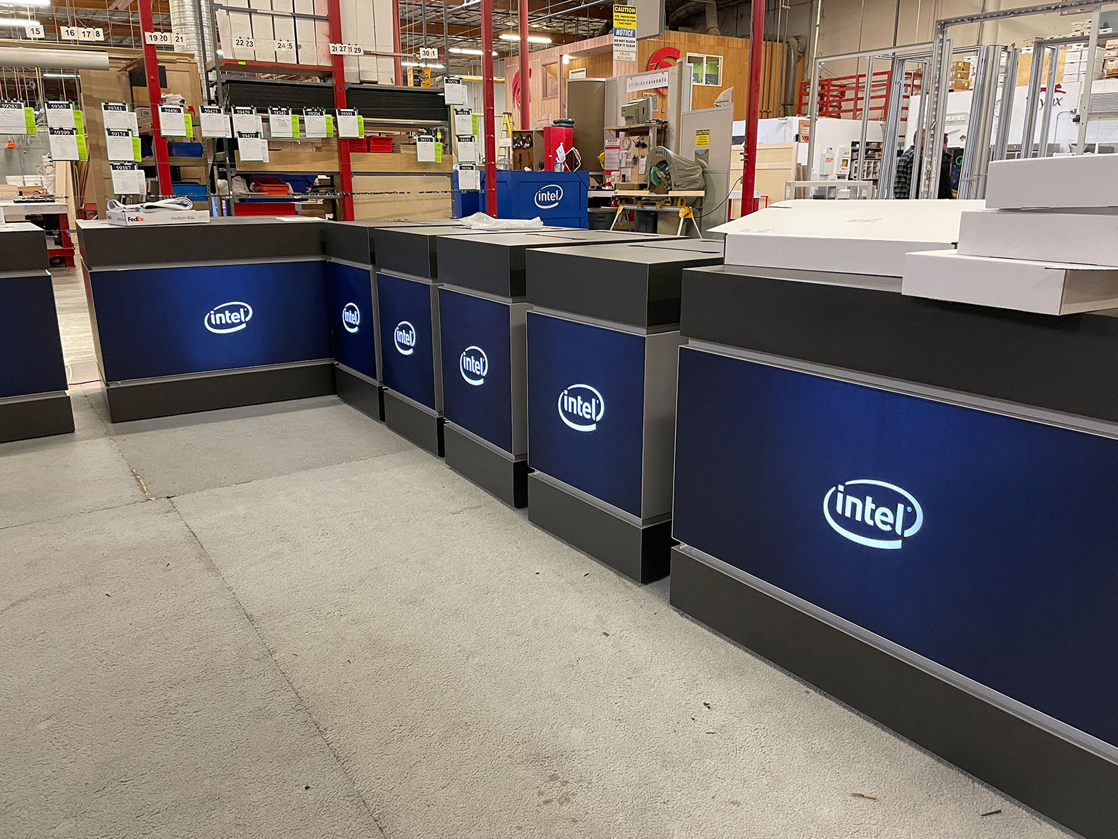 Custom Counters with Backlit Graphics, Integrated Wire/Electrical Management, Casters, SEG Graphics, and Custom Wood Crates Custom Counters with Backlit Graphics, Integrated Wire/Electrical Management, Casters, SEG Graphics, and Custom Wood Crates Custom Crates