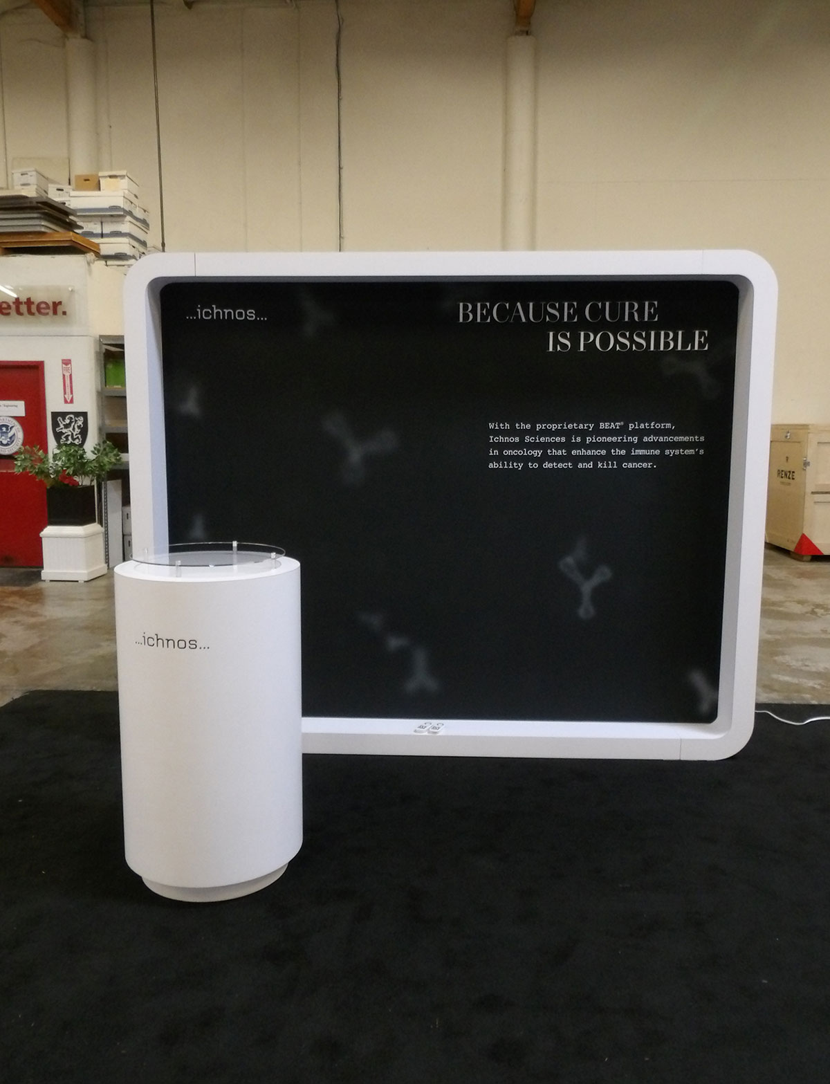 Custom VK-1340 Backlit Exhibit with Programmmable RGB Lights, Monitor Mount, and MOD-1583 Pedestal Custom VK-1340 Backlit Exhibit with Programmmable RGB Lights -- View 2 Custom VK-1340 Backlit Exhibit with Programmmable RGB Lights -- View 3 MOD-1583 Pedestal with Programmable RGB Lights
