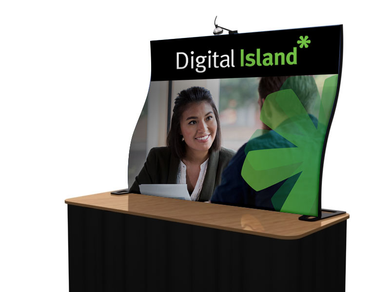 The aluminum frames are powder-coated black for durability and a stunning appearance. The fabric graphics wrap around the frame and are machine washable. Most kits come with halogen lights. With 14 shapes, you’re sure to find a design that attracts more attention than a chihuahua in a handbag on Rodeo Drive. Designed and built in the USA.
